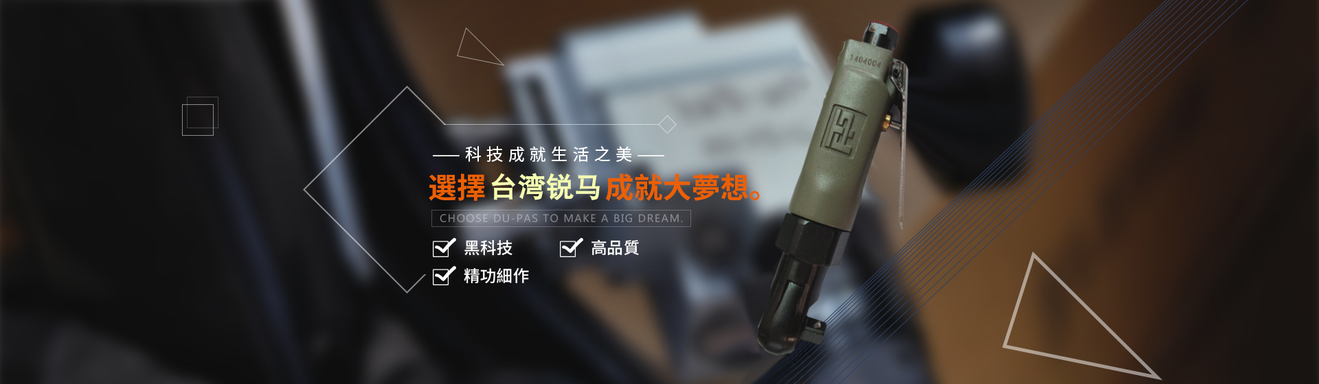 為給廣大客戶提供更加優(yōu)質(zhì)完善的服務(wù),臺(tái)灣銳馬氣動(dòng)工具于2001年進(jìn)入中國大陸市場,并以100%臺(tái)灣原裝進(jìn)口氣動(dòng)工具在大陸銷售銳馬、杜派氣動(dòng)工具以及充電式電動(dòng)工具。