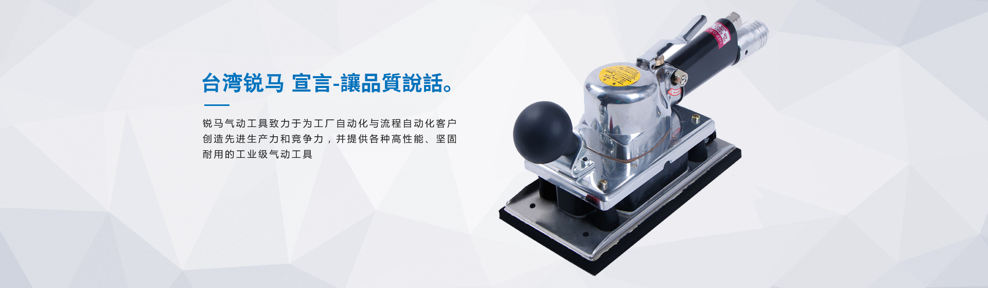 銳馬氣動(dòng)工具廠家是臺(tái)灣專業(yè)制造氣動(dòng)工具廠"筌誠機(jī)械工業(yè)",30多年來致力于氣動(dòng)/電動(dòng)工具領(lǐng)域之研發(fā),生產(chǎn)和銷售,努力提升本身產(chǎn)品價(jià)值,在臺(tái)灣氣動(dòng)工具制造領(lǐng)域始終處于領(lǐng)先地位,并成功銷往國際市場。